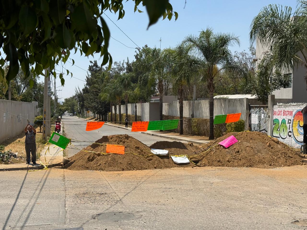 Durante esta jornada, los inconformes endurecieron su protesta al colocar montículos de tierra, con lo que reforzaron el bloqueo que desde hace días mantienen en la zona.
